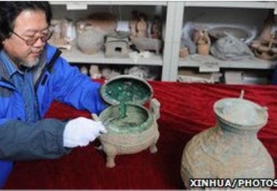 Bronz bir kabın içinde kapalı halde bulunan sıvı ve kemiklerin, ülkenin antik dönemlerdeki başkenti Şian'da bulunduğu belirtildi.